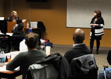 | Keywords: Sexual Assault Prevention (SAPR) Victim Advocate (VA) Training 150115-N-ZY850-001.jpg en Naval Base Kitsap Bangor Sexual Assault Prevention SAPR Victim Advocates Nicki Hayford far left and Candy Cardinal right explain a possible scenario during a SAPR VA training course The training will certify the attendees as SAPR Victim Advocates allowing them to help raise awareness of and eliminate sexual assault from the Navy U S Navy photo by Mass Communication Specialist 2nd Class Jamie Hawkins/Released 2015-01-15 Jamie Hawkins https //www dvidshub net/image/1729926 150115-N-ZY850-001 2015-01-21 10 17 SILVERDALE WA US PD-USGov-Military-Navy Naval Base Kitsap Images from DoD uploaded by Fæ |