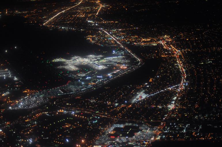 | Keywords: outdoor Aerial photo of San Francisco International Airport (lit area in left center) and surrounding area taken at night from a passenger plane. CC0 waiver: To the extent possible under law, I waive all copyright and related or neighboring rights to this work. Aerial photo of San Francisco International Airport (lit area in left center) and surrounding area taken at night from a passenger plane. CC0 waiver: To the extent possible under law, I waive all copyright and related or neighboring rights to this work. |
