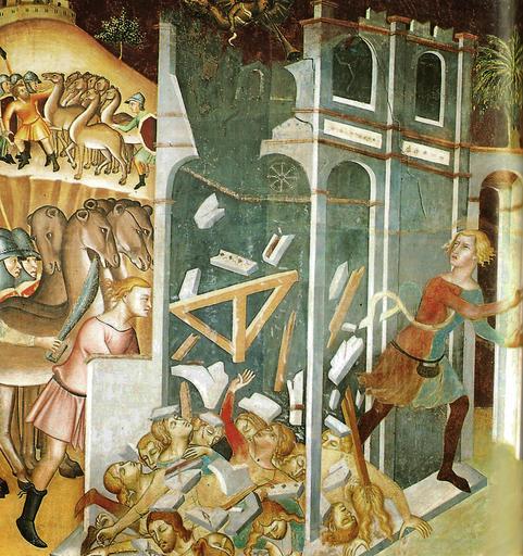 Keywords: SG OT The house of Job falls on his children Bartolo di Fredi.JPG it Il demonio abbatte la casa di Giobbe affresco di Bartolo di Fredi Duomo di San Gimignano San Gimignano Collegiate Church Old Testament fresco cycle south aisle Bartolo di Fredi 14th century The Devil causes the house of Job to fall down killing his children Wikimedia Commons Vignaccia76 XIV secolo PD-Old-100 Demonio_abbatte_casa_giobbe _bartolo jpg This version appears to have been digitally colour- corrected The present version has been rendered to an approximation of the original colours Duomo San Gimignano - frescos Bartolo di Fredi |