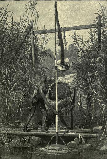 | Keywords: Shaduf3.jpg William Jay Dana from an original sketch or watercolor by John Douglas Woodward en Caption center smallcaps shadûf <br>The weight of the water in the bucket is balanced by the lump of Nile mud at the other end of the swinging beam and the water is thus raised to<br>the mouth of the canal with little effort but pulling down the bucket is hard work and the achine is ruinously extravagant in labour Also spelt shadoof or shaduf 1877 “79 http //www archive org/details/picturesquepales04wilsuoft Picturesque Palestine Sinai and Egypt Vol IV https //archive org/stream/picturesquepales04wilsuoft page/186/mode/2up p 187 other versions PD-US PD-100 PD-100 Shadoofs in Egypt John Douglas Woodward Shadoofs in art Picturesque Palestine Sinai and Egypt William Jay Dana |