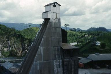 Keywords: Shaft Elevator.jpg en Another view of La Luz Gold Mine picturing the main shaft tunnel cable lift Allen Drebert Allen Drebert 1957-1961 Siuna Nicaragua La Luz Gold Mine Mine elevators