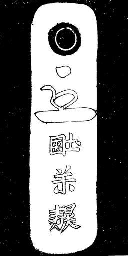 | Keywords: Shaigino-Jurchen-paizi.png en A silver paizi plaque with an inscription serving as a travel pass or a sign of authority; this one has been interpreted as a sign of authority of a mouke the chief of a thousand households with a Jurchen inscription Found at the Shaigino site 70 km to the north of Nakhodka Primorsky Krai in 1976 The inscription in pseudo-small Jurchen script i e large Jurchen script written in blocks in the style of small Jurchen script reads gurun ni xada-xun which means Trust of the Country ru Се еб яная пайцза ве ительная би ка тысячника текст кото ой выг ави ован на чжу чжэньском языке найденная на Шайгинском го одище памятник культу ы чжу чжэней вто ой половины XII пе вой т ети XIII вв на те ито ии П имо ского к ая п име но в 70 км к севе у от г аходка и нескольких км к югу от с Се геевка Па тизанского айона См http //www fegi ru/primorye/history/shaigin htm zh 中 金代女 文 牌,1976年出 於今俄羅斯濱海邊疆 納 德卡以北70公里處的賽加遺 (即古代的蘇城),著錄於1977年蘇聯科學出版社 1976年的 古發現 牌上刻女 小字 論 你 哈答溫 , 人譯 之誠 ,即漢語 使知 意 之意 Jin dynasty 12-13th century inscription on a silver plaque Reproduced in Archeologicheskie otkrytiya 1976 goda and later in Danial Kane's The Sino-Jurchen Vocabulary of the Bureau of Interpreters 1989 p 74 Unknown Jurchen scribe late 12th or early 13th century PD-Art-100 Jurchen inscriptions Jin Dynasty 1115-1234 Primorsky Krai Paiza of the Jin Dynasty 1115-1234 Jurchen language |