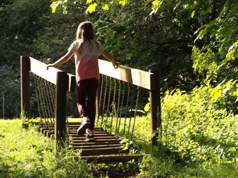 Keywords: shaky bridge forest adventure path nature's playground child girl forest meadow waldheim