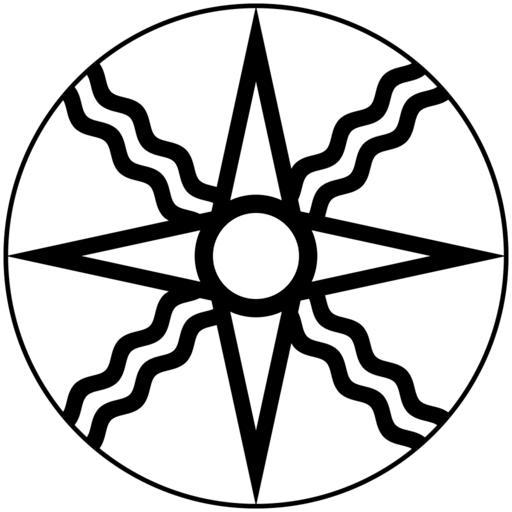 | Keywords: Shamash-sun-symbol.svg A slightly schematized/simplified version of one form of the ancient symbol of the Mesopotamian sun-god Shamash with alternate pointy and wavy rays According to Gods Demons and Symbols of Ancient Mesopotamia An Illustrated Dictionary by Jeremy Black and Anthony Green 1992 ISBN 0-292-70794-0 p 168 it occurs from the Akkadian down to the Neo-Babylonian period and The Akkadian names of the symbol were šamšatu and niphu It was often represented on a pole as a standard For modern symbols which incorporate a version of the Shamash sun-symbol see File Flag of the Assyrian people svg File Iraq state emblem CoA 1959-1965 Qassem svg etc This is an SVG version of File Star of Shamash png attempting to duplicate the appearance of the PNG file but generated from abstract geometry and symmetrical converted from the following vector PostScript source code <pre> /A 0 1 2 pop 18 5 0 35 9 45 13 5 rcurveto 10 4 5 26 5 13 5 45 13 5 rcurveto 18 5 0 35 -9 45 -13 5 rcurveto 10 -4 5 26 5 -13 5 45 -13 5 rcurveto for stroke def 287 287 translate 1 -1 scale 5 2 setlinewidth 0 0 280 5 0 360 arc closepath stroke 20 5 setlinewidth 0 0 58 5 0 360 arc closepath stroke gsave 45 rotate 38 setlinewidth 0 1 3 gsave 39 5 scale dup 2 eq 1 -1 scale if 3 eq 1 -1 scale if 178 -13 5 25 sub moveto A 178 -13 5 52 add moveto A grestore 90 rotate for grestore 18 setlinewidth 4 42 426 42 426 moveto 238 0 lineto 42 426 -42 426 lineto stroke 90 rotate repeat showpage EOF</pre> Archaeological star glyphs Star of Shamash Images with PostScript source code |
