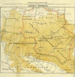 | Keywords: Shamilmap1856.JPG en Map of the Kakhetian-Dagestani borderlands - the scene of Shamil's attack in 1854 Плен у Шамиля П авдивая повесть о восьмимес и шестиднев в 1854-1855 г п ебывании в плену у Шамиля семейств покойного ген -м кн О белиани и подполк кн Чавчавадзе основан на показаниях лиц участвовавших в событии В 3 ч / Соч Е А Ве де евского Санкт-Пете бу г тип Ко олева и К° 1856 http //dlib rsl ru/view php path /rsl01003000000/rsl01003542000/rsl01003542425/rsl01003542425 pdf Russian State Library Author 1856 PD-RusEmpire 19th-century maps of Georgia Imam Shamil Maps of the Caucasus during the Caucasian War 1817 1864 Georgia in the 1850s Maps of Kakheti 1856 maps Maps in Russian Russian fortified lines Source Плен у Шамиля П авдивая повесть о восьмимес и шестиднев в 1854-1855 г п ебывании в плену у Шамиля семейств покойного ген -м кн О белиани и подполк кн Чавчавадзе основан на показаниях лиц участвовавших в событии В 3 ч / Соч Е А Ве де евского Санкт-Пете бу г тип Ко олева и К° 1856 http //dlib rsl ru/view php path /rsl01003000000/rsl01003542000/rsl01003542425/rsl01003542425 pdf Russian State Library |