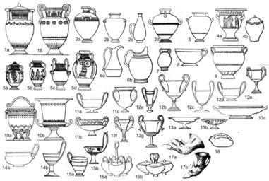| Keywords: Shapes of ancient greek pottery.jpg Ceramica greca per forma 1а - cratere a colonnette 1b - cratere a vòlute; 2 - hydria 2a 2b - standard 2c - hydriskos 2d - kalpis ; 3 - stamnos; 4a 4b - krossoi; 5a 5b 5c 5c - anfore panatenaiche; 6a 6b - oinochoi; 7 - pelike 8 - dinos; 9 - kelébe 10a - cratere 10b - cratere a calice; 11a 11b 11c - karcesia 12a 12b 12c 12d 12e 12f 12g - kantharoi; 13a 13b 13c - kylikes; 14a 14b - сotylai; 15a 15b - kyathoi; 16a 16b - kilokes; 17a 17b - rhyta 18 - askos Ancient Greek pottery by shape 1а 1b - amphora; 2 - hydria 2a 2b - standart 2c - hydrisk 2d - konis ; 3 - stamnos 4a 4b - krossos 5 - panathenaic amphorae 6 - oenochoe 7 - pelike 10 - krater 11 - karcesion 12 - kantharos 13 - kylix 14 - сotyla 15 - kyathos 16 - kilox 17 - rhyton 18 - askos 1а 1b - амфо а; 2 - гид ия 2а 2b - обычные 2с - гид иск 2d - конис 3 - cтамнос 4 - к оссос 5 - панафинейские амфо ы 6 - ойнохойя 7 - пелика 8 - лекана 9 - келеб 10 - к ате ы 11 - ка чесион 12 - канфа 13 - килик 14 - котила 15 - киаф 16 - килокс 17 - итон 18 - аскос Cerámica griega según su forma 1а - crátera de columnas 1b - crátera de volutas; 2 - hidria 2a 2b - estándar 2c - hidrisco 2d - calpis ; 3 - estamno; 4a 4b - crátera de campana; 5a 5b 5c 5c - ánfora panatenaica; 6a 6b - enocoe; 7 - pélice 8 - lecanis; 9 - célebe 10a - crátera 10b - crátera de cáliz; 11a 11b 11c 12a 12b 12c 12d 12e 12f 12g - cántaro; 13a 13b 13c - cílice o cáliz; 14a 14b - сotila; 15a 15b - ciato; 16a 16b - cilox; 17a 17b - ritón 18 - asco Ancient Greek pottery by shape 1а 1b - amphora; 2 - hydria 2a 2b - standart 2c - hydrisk 2d - konis ; 3 - stamnos 4a 4b - krossos 5 - panathenaic amphorae 6 - oenochoe 7 - pelike 10 - krater 11 - karcesion 12 - kantharos 13 - kylix 14 - сotyla 15 - kyathos 16 - kilox 17 - rhyton 18 - askos «History of culture Ancient Greece» Moscow 1903 «Исто ия культу ы на одов ми а Д евняя Г еция» авто Г Вайс Collage own work 2007-10-23 Professor Herman Weis 1822-1897 Ancient Greek pottery by shape Uploaded by Shakko PD-Art |