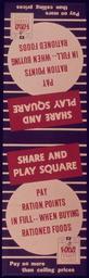 | Keywords: SHARE AND PLAY SQUARE. PAY RATION POINTS IN FULL - WHEN BUYING RATIONED FOODS. PAY NO MORE THAN CEILING PRICES. - NARA - 515392.jpg Scope and content General notes 515392 Local identifier 44-PA-1722 Office for Emergency Management Office of War Information Domestic Operations Branch Bureau of Special Services 03/09/1943 - 09/15/1945 Still Picture Records Section Special Media Archives Services Division NWCS-S National Archives at College Park 8601 Adelphi Road College Park MD 20740-6001 1941 - 1945 Record group Record Group 44 Records of the Office of Government Reports 1932 - 1947 Record group ARC 373 World War II Posters compiled 1942 - 1945 Series ARC 513498 File unit File unit ARC Variant control numbers NAIL Control Number NWDNS-44-PA-1722 Other versions <gallery> File SHARE_AND_PLAY_SQUARE _PAY_RATION_POINTS_IN_FULL_-_WHEN_BUYING_RATIONED_FOODS _PAY_NO_MORE_THAN_CEILING_PRICES _-_NARA_-_515392 tif tif File SHARE_AND_PLAY_SQUARE _PAY_RATION_POINTS_IN_FULL_-_WHEN_BUYING_RATIONED_FOODS _PAY_NO_MORE_THAN_CEILING_PRICES _-_NARA_-_515392 jpg jpg </gallery> NARA-cooperation PD-USGov World War II posters from the United States |