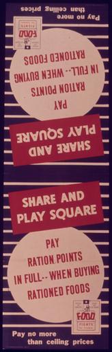 Keywords: SHARE AND PLAY SQUARE. PAY RATION POINTS IN FULL - WHEN BUYING RATIONED FOODS. PAY NO MORE THAN CEILING PRICES. - NARA - 515392.jpg Scope and content General notes 515392 Local identifier 44-PA-1722 Office for Emergency Management Office of War Information Domestic Operations Branch Bureau of Special Services 03/09/1943 - 09/15/1945 Still Picture Records Section Special Media Archives Services Division NWCS-S National Archives at College Park 8601 Adelphi Road College Park MD 20740-6001 1941 - 1945 Record group Record Group 44 Records of the Office of Government Reports 1932 - 1947 Record group ARC 373 World War II Posters compiled 1942 - 1945 Series ARC 513498 File unit File unit ARC Variant control numbers NAIL Control Number NWDNS-44-PA-1722 Other versions <gallery> File SHARE_AND_PLAY_SQUARE _PAY_RATION_POINTS_IN_FULL_-_WHEN_BUYING_RATIONED_FOODS _PAY_NO_MORE_THAN_CEILING_PRICES _-_NARA_-_515392 tif tif File SHARE_AND_PLAY_SQUARE _PAY_RATION_POINTS_IN_FULL_-_WHEN_BUYING_RATIONED_FOODS _PAY_NO_MORE_THAN_CEILING_PRICES _-_NARA_-_515392 jpg jpg </gallery> NARA-cooperation PD-USGov World War II posters from the United States |
