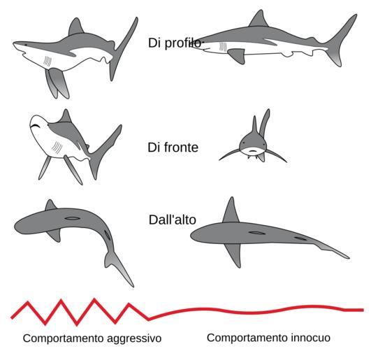 | Keywords: Shark threat display it.svg Threat display of a grey reef shark The postures become more exaggerated as the danger perceived by the shark increases Shark_threat_display svg 2010-04-18 19 35 UTC Shark_threat_display svg Chris_huh derivative work Andrea dematteis 1987 Shark_threat_display svg Animal aggression Selachimorpha |