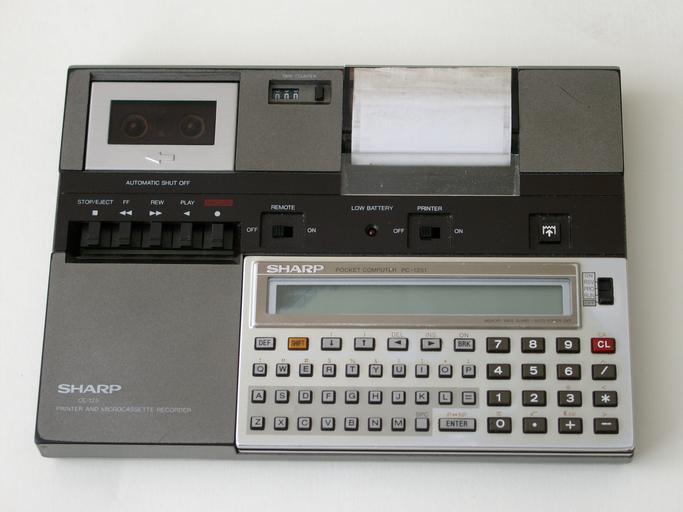 | Keywords: Sharp PC 1251.jpg fr Mini ordinateur Pocket Computer Sharp PC-1251 sur son support Sharp CE-125 imprimante et lecteur de cassette en Pocket Computer Sharp PC-1251 with its printer and microcassette recorder 2011-09-03 own Mspecht cc-zero Uploaded_with_UploadWizard Sharp calculators Sharp pocket computers Microcassette Microcassette-based tape drives Data recorders Printers |