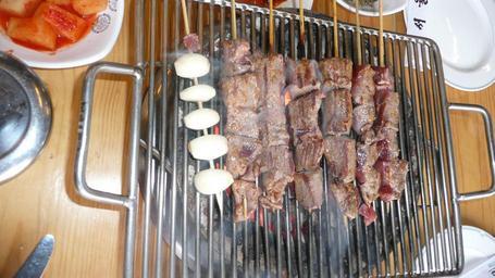 Keywords: Shashlik in UB 2.jpg en Shashlik served in a Restaurant in Ulan Bator Mongolia Own Brücke-Osteuropa 2009-06-24 Shashlik