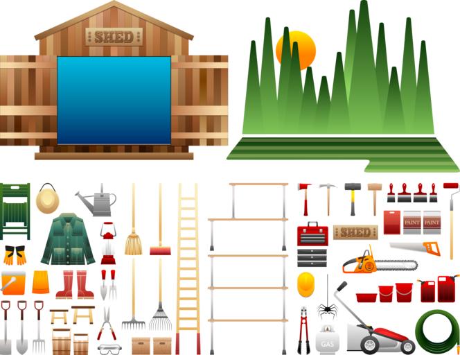 | Keywords: shed paraphernalia shed tools wooden gardening gardening tools storage shovel spade potting garden tools lawnmower hose pails collection lawn mower bolt cutter garden fork design toolbox paint can paint brushes paint roller chair hat axe watering can garden gloves shelves |