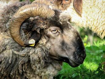 Keywords: sheep aries ram bock horn wool head livestock pasture fur animal portrait