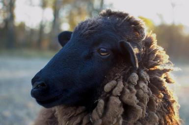 Keywords: sheep black head profile portrait wool agriculture outdoors livestock farm ranch mammal rural looking face