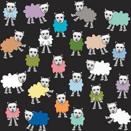Keywords: sheep cartoon colorful black pink green blue yellow orange white brown grey wool spring farm animal lamb
