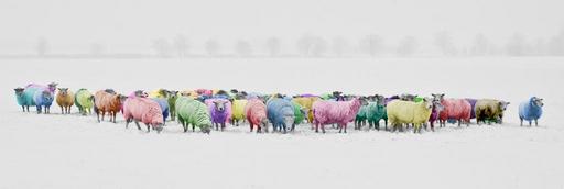 Keywords: sheep colorful colorized rainbow pantone multicolor winter snow animals nature frozen seasonal free image digital art horizontal panoramic landscape white photo montage
