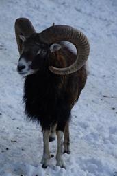 Keywords: sheep mouflon winter snow winter fur wintry cold white snowy animal mammal horns zoo petting zoo enclosure deer park bock ram horn aries ungulate livestock pasture