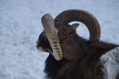 Keywords: sheep mouflon winter snow winter fur wintry cold white snowy animal mammal horns zoo petting zoo enclosure deer park bock ram