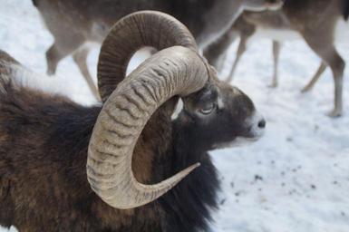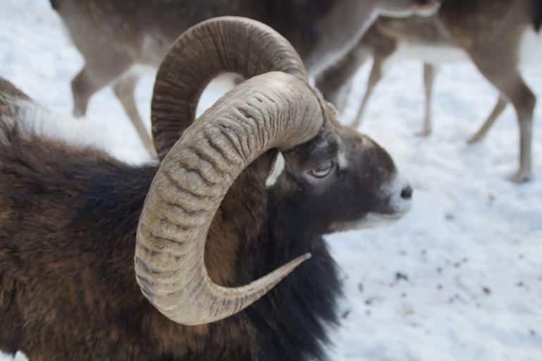 Keywords: sheep mouflon winter snow winter fur wintry cold white snowy animal mammal horns zoo petting zoo enclosure deer park horn bock