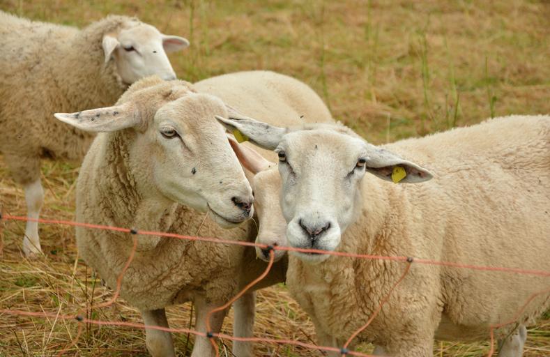 Keywords: sheep pasture livestock wool agriculture cattle breeding fur together animal portrait close curious animal world wildlife photography