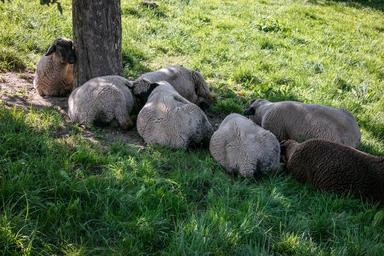 Keywords: sheep rest break protection shadow flock of sheep group concerns grass flock meadow pasture look chill out community relaxation idyll sleep