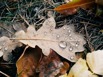 Keywords: sheet autumn drops macro autumn leaf nature yellow leaves oak leaf park golden autumn autumn leaves listopad bright grass yellowed sheet
