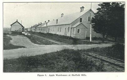 | Keywords: Sheffield Mills.jpg en Sheffield Mills Nova Scotia Canada circa 1930 a typical stop on the Dominion Atlantic Railway with a small station and giant apple warehouses The photograph was taken by Edson Graham published in the book Some Economic Aspects of the Apple Industry in Nova Scotia by Willard Longley Book Some Economic Aspects of the Apple Industry in Nova Scotia William V Longley 1931 PD-old Apple trade Kings County Nova Scotia Warehouses Train stations in Nova Scotia Canada 1931 in Nova Scotia |