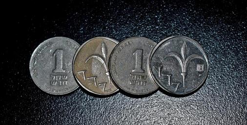 Keywords: shekel new shekel currency israel israeli currency money sheqel sheqalim banking bank earning coins coinage finance financial economy cash income inflation pocket change cupronickel black background