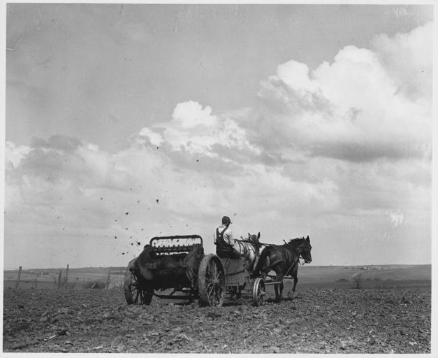 | Keywords: Shelby County, Iowa.... Detailed description, These pictures show how people in this locality preser . . . - NARA - 522437.jpg These pictures show how people in this locality preserve the fertility of their land This image shows a manure spreader being loaded and operated This last is not a usual or necessary practice and no farmer has enough barnyard manure for all his tillage This operator however puts all he has on the land and believes that it is worth his while to do so since it acts to make a good crop better General notes 522437 Local identifier 83-G-44268 Department of Agriculture Bureau of Agricultural Economics Division of Economic Information ca 1922 - ca 1953 Rusinow Irving Photographer 5307166 <br /> Still Picture Records Section Special Media Archives Services Division NWCS-S National Archives at College Park 8601 Adelphi Road College Park MD 20740-6001 1941 05 02 - _These_pictures_show_how_people_in_this_locality_preser_ _ _ _-_NARA_-_522437 jpg jpg </gallery> NARA-cooperation PD-USGov Horse-drawn wagons in the United States Manure spreaders Irving Rusinow Shelby County Iowa |