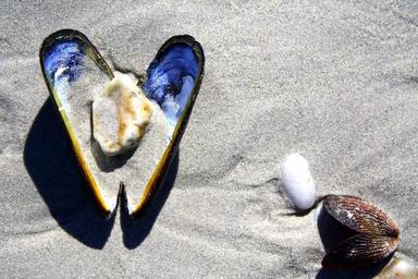 Keywords: shell beach sand stones heart sea