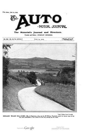 | Keywords: Shelsley Walsh 1913.jpg en Photograph of the first Vauxhall 30-98 setting records at Shelsley Walsh Hill-Climb 1913-06-14 The Auto Motor Journal 14 June 1913 https //babel hathitrust org/cgi/pt id mdp 39015022472909;view 1up;seq 1119 author other versions cc-zero Shelsley Walsh Speed Hill Climb Vauxhall 30-98 1913 |