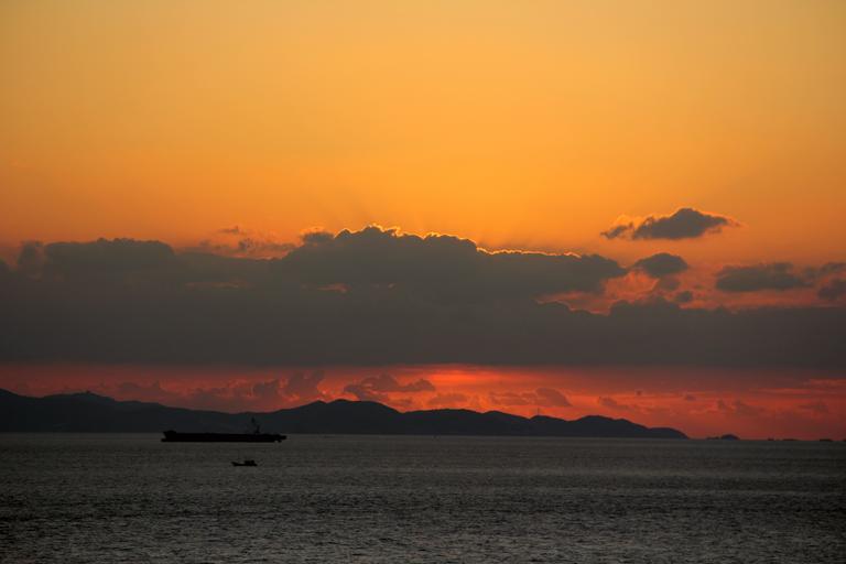 Keywords: shengsi archipelago islands island sunrise riverside the changjiang river estuary the yangtze river hiu kong clouds the water ship vessel cargo ships early in the morning views the scenery dark watch the sunrise dawn breaking dawn vision sunshine light sky travel