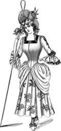| Keywords: ShepherdessSkirt of chintz.png Shepherdess outfit suitable to be worn to masquerade ball <br/> Skirt of chintz with large flowers Bodice and panier drapery of pink bun's-veiling Black velvet on sleeves and square-cut neck Large hat trimmed with flowers Masquerades Tableaux and Drills 1906 The Butterick Publishing Company PD PD-old Skirts Velvet in art Panniers clothing Images by Haabet Chintz Black and white drawings of dresses Black and white drawings of women | ||||
