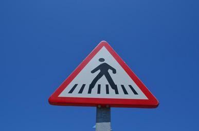 Keywords: shield pedestrian traffic sign street sign zebra crossing