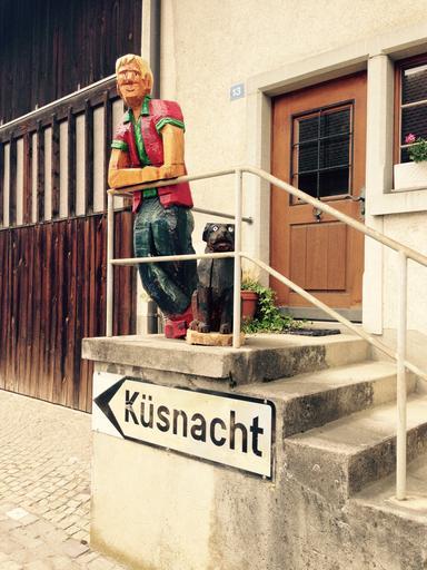 Keywords: shield statue fig küsnacht switzerland characters art directory stairs input man home zurich canton door window