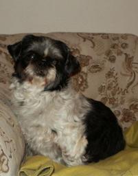 Keywords: Shih-tzu.JPG en black and white stripy Shih-tzu own Nemusel som 2011-03-25 Shih Tzu