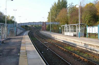 | Keywords: Shildon railway station.jpg Shildon railway station on the Tees Valley Line The bridge is a footbridge connecting the platforms - it's accessed on this side by the steps/ramp on the platform while on the other side the path runs behind the trees to the ramp behind the shelter and timetable noticeboard blue handrail just visible The exit on this platform between the shelter and steps/ramp leads to the Locomotion railway museum opened in 2004 The main line connection to the Shildon site is a short distance behind the camera connected to this side of the track The exit on the other platform leads to housing The actual centre of Shildon is around 1km away in the general direction of the photo The line curves away to the north west before a gradual curve back to the west before reaching the last stop on the line Bishop Auckland station Behind the camera the track heads south east on a straight alignement to Newton Aycliffe station English Wikipedia 2003-01-01 Cacolantern wikipedia en en wikipedia Cacolantern Original upload log en wikipedia Ultra7 CommonsHelper en wikipedia Shildonrailwaystation jpg 2007-10-22 11 17 Cacolantern 2272×1504× 1736279 bytes <nowiki> </nowiki> Shildon railway station |