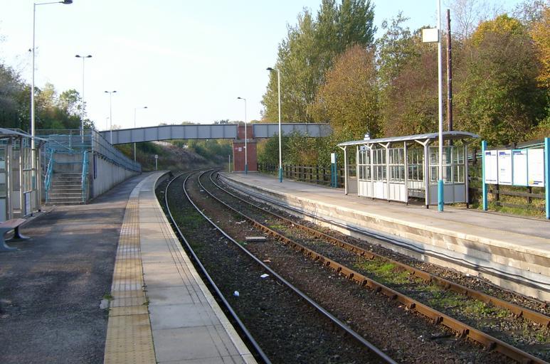 Keywords: Shildon railway station.jpg Shildon railway station on the Tees Valley Line The bridge is a footbridge connecting the platforms - it's accessed on this side by the steps/ramp on the platform while on the other side the path runs behind the trees to the ramp behind the shelter and timetable noticeboard blue handrail just visible The exit on this platform between the shelter and steps/ramp leads to the Locomotion railway museum opened in 2004 The main line connection to the Shildon site is a short distance behind the camera connected to this side of the track The exit on the other platform leads to housing The actual centre of Shildon is around 1km away in the general direction of the photo The line curves away to the north west before a gradual curve back to the west before reaching the last stop on the line Bishop Auckland station Behind the camera the track heads south east on a straight alignement to Newton Aycliffe station English Wikipedia 2003-01-01 Cacolantern wikipedia en en wikipedia Cacolantern Original upload log en wikipedia Ultra7 CommonsHelper en wikipedia Shildonrailwaystation jpg 2007-10-22 11 17 Cacolantern 2272×1504× 1736279 bytes <nowiki> </nowiki> Shildon railway station