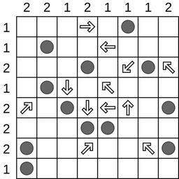 Keywords: Shinro end.svg Shinro puzzle game board in ending configuration This images is based upon and is an SVG replacement for Shinro end png on English Wikipedia by John Rotenstein validSVG own 2010-08-05 Life of Riley Shinro board in starting configuration <br /> 200px Logic puzzles