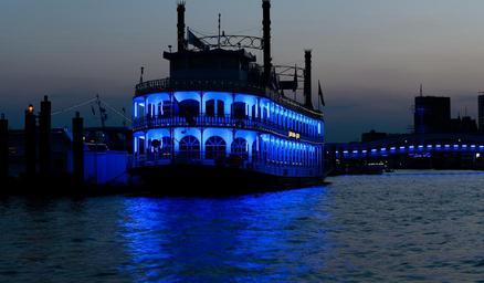 Keywords: ship blue port night lighting boot river