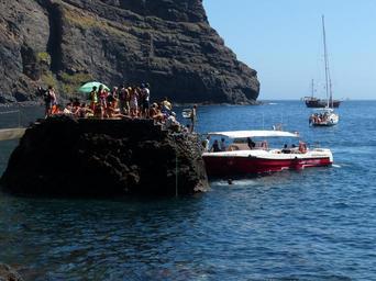Keywords: ship jetty booked masca ravine coast stones ocean human personal group bathers wait pick up