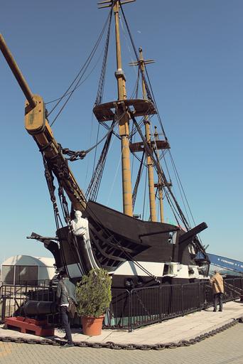 Keywords: ship port old lisbon portugal water anchor sea boot rigging mast sail masts clouds sky museum ship sailing mast three masted dew fixing