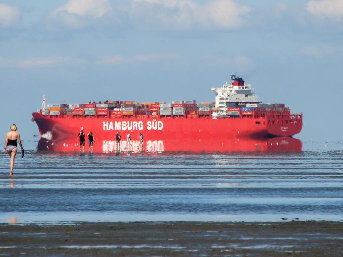 Keywords: ship wadden sea mirage north sea watts sea beach flicker heat flicker summer