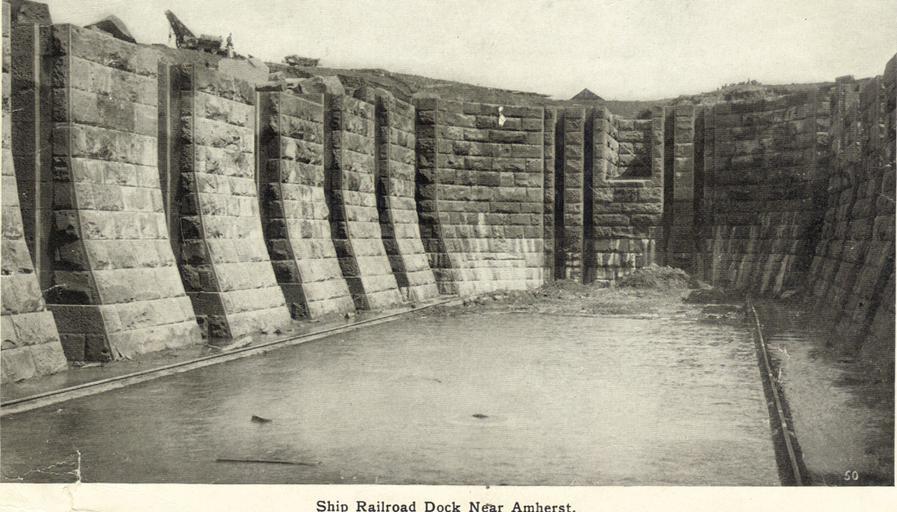Keywords: Shiprailwaydock.jpg en The southern dock of the Chignecto Ship Railway Fort Lawrence on the Fundy Bay near Amherst Nova Scotia Canada University of New Brunswick Archives reporter 1890 1890 public 45° 50 ² 08 23 ³ N 64° 16 ² 28 10 ³ W cc-zero Shipbuilding in Canada Freight rail transport Amherst Nova Scotia Drydocks in Canada Chignecto Marine Transport Railway Company