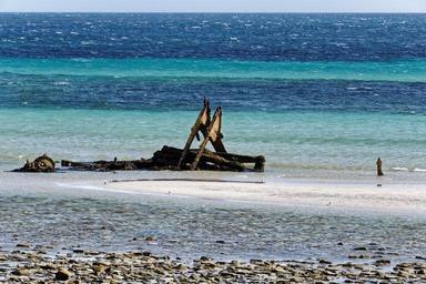 Keywords: shipwreck sea ocean water ship boat wreck tourism seascape rusting ship sand beach sky coastline shore scenery marine vessel nautical
