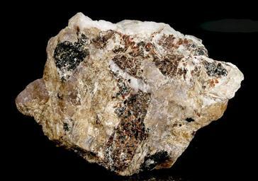 | Keywords: Shkatulkaite, Belovite-(Ce), Umbozerite, Ussingite, Sérandite, Manganoneptunite, Vuonnemite-576102.jpg The orange stuff mostly on the left and bottom right is sérandite The red/brown stuff is manganoneptunite with very dark green umbozerite grains and cream/white shkatulkaite mixed in here and there The pink/violet stuff is ussingite The dark actually dark green blobs are altering umbozerite but they don ™t have the usual radiating structure Most of the shkatulkaite and vuonnemite is in the upper right The belovite is greenish but it is on the back child photo and is too small to make out at this scale in any case The white stuff on top is probably microcline There are also a couple of small blebs of black bitumen Some of the species/features are not really visible at the scale of the photo See the list of close-ups below Strangely for me the ussingite appears to fluoresce bright pale greenish SW and there is a band of white scaly pearly material between layers of more platy shkatulkalite right most tip that fluoresces bright orange/yellow According to Pekov Lovozero Massif p 427 Vuonnemitre alteration gives origin for thin-flaked aggregates of epistolite and shkatulkalite But I would not expect such aggregates to fluoresce Shkatulkait Belovit- Ce Umbozerit Ussingit Sérandit Manganoneptunit Vuonnemit Größe 39 mm x 34 mm x 19 mm Fundort Shkatulka-Pegmatit Umbozero Mine Umbozerskii Mine Alluaiv Mt Lovozero Massiv Halbinsel Kola Oblast Murmansk Russland 2013-12-02 http //www mindat org/photo-576104 html http //www mindat org/user-11235 html 0 Modris Baum Modris Baum Shkatulkaite Belovite- Ce Umbozerite Ussingite Sérandite Manganoneptunite Vuonnemite Files by Modris Baum from mindat |