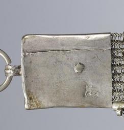 | Keywords: Shm Sharayan - Woman's Headband - Walters 572310 - Mark B.jpg The headband consists of a flexible interlaced silver band with square endpieces each with rosette-shaped knob that fastens the band inside the terminals The band is decorated with a large central rosette in the center which is combined with a smaller rosette and a dangle below Two smaller disk with rosettes on each side of the large central rosette are directly attached to the band In addition between end-pieces discs and the central rosette are four combinations of rhombic elements flanked by slim bars with a five-disc motif each of which is attached to a movable retainer The rhombic elements are decorated with smaller rhombs in the center enclosed by rings and disks The decoration of the attachments is made in filigree technique; the large central rosette is worked in repoussé Hanging down from the band are forty-five multi-element dangles which combine rings disks and small cuboids At the back of one endpiece is a stamp with the Arabic date nusfi 128 7 the term nusfi means half In this year al-Hadi Galib ruled in Sana a' but also Saykh Muhsin b Ali Mu'id It was one year before the second Ottoman occupation of Yemen began On the back of the other end-piece is an engraved Hebrew inscription that names the silversmith Shm uel Sharayan mahasit The term mahasit means half 1287 AH/AD 1870-1871 silver with gilding L 19 1/2 x W of end-pieces 1 1/2 in 49 5 x 3 8 cm accession number 57 2310 80914 Mr Benjamin Zucker Zucker Family Trust and Mr Derek Content New York and London by purchase Walters Art Museum Joint gift to the Walters Art Museum Baltimore and the Israel Museum Jerusalem by Mr Benjamin Zucker and Mr Derek Content in honor of Mrs Barbara Zucker and Mrs Amanda Content 2010 Stamp Arabic nusfi 128 7 AH Engraving Hebrew Sm uel Sarayan mahasit place of origin Raydah Yemen Walters Art Museum license Jewellery in the Walters Art Museum South Arabian art in the Walters Art Museum Shm Sharayan Media contributed by the Walters Art Museum needs category review |
