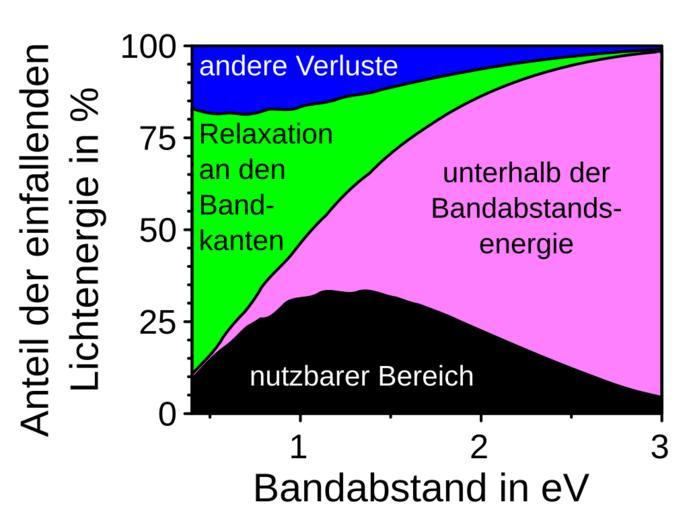 MAKE A MEME View Large Image ShockleyQueisserBreakdown2 (DE).svg en The Shockley-Queisser limit for the maximum possible efficiency of a solar cell black and the inevitable losses that limit it other colors The black height is energy that can be extracted as useful ...