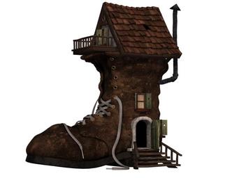 Keywords: shoe boots home boots house fantasy fairy tales stairs door digital art isolated