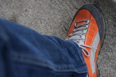 Keywords: shoe hiking shoes clothing pants jeans blue orange
